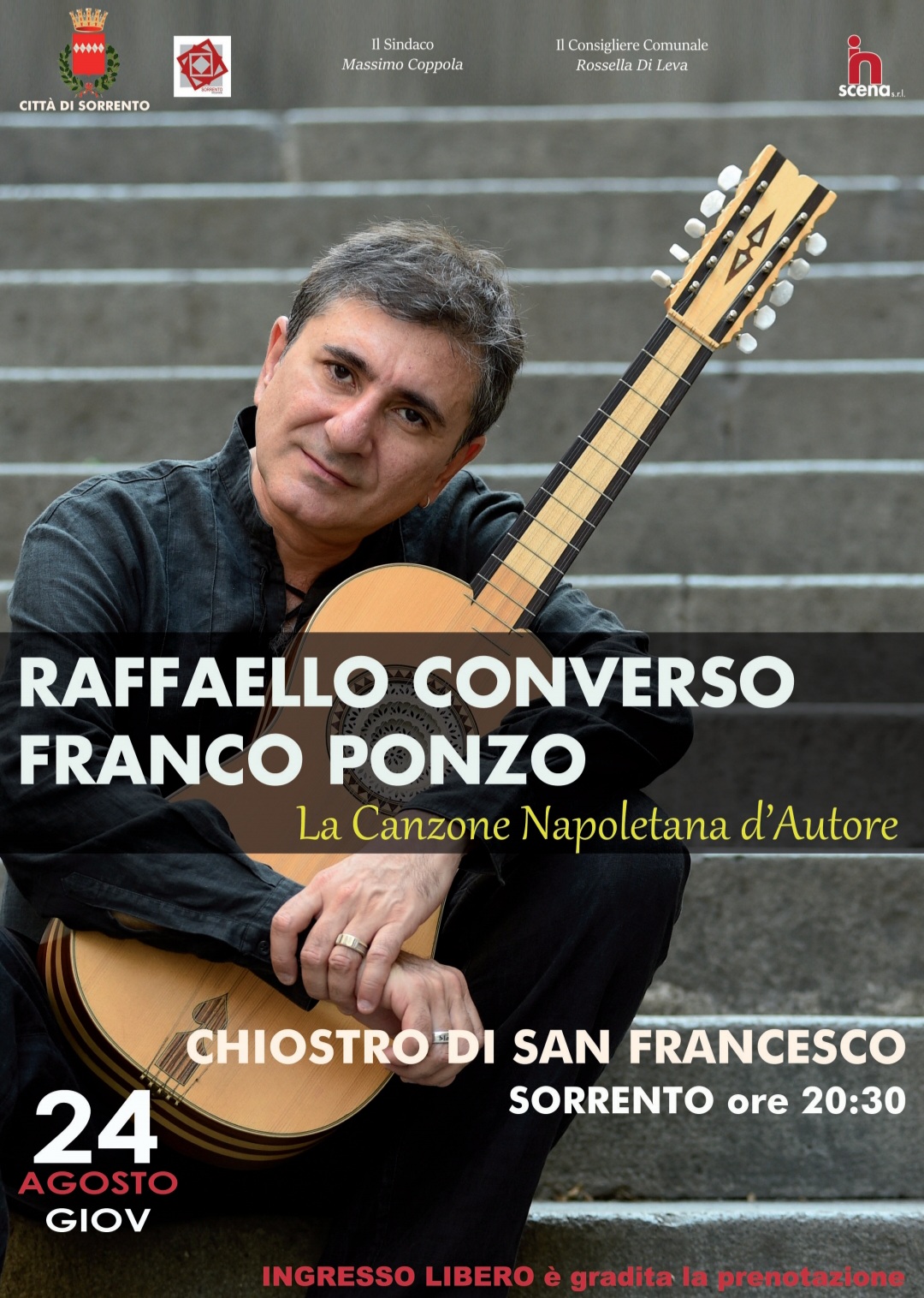 Una serata dedicata a "La canzone napoletana d'autore", quella in programma per giovedì 24 agosto, alle ore 20.30, al chiostro di San Francesco. Protagonista del recital musicale, tra storia, tradizioni e contaminazioni, attraverso una sequenza di brani dai secoli scorsi ad oggi, sarà Raffaello Converso. L’intento è quello di proporre al pubblico il repertorio partenopeo, musicalmente rivisitato in un sound etno-mediterraneo.
