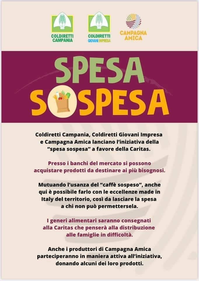 Per aiutare a combattere le nuove povertà, sarà possibile aderire alla spesa sospesa del contadino, donando cibo e bevande alle famiglie più bisognose: frutta, verdura, formaggi, conserve, marmellate e legumi, e altri generi alimentare di qualità e a chilometro zero che saranno consegnati alla Caritas.