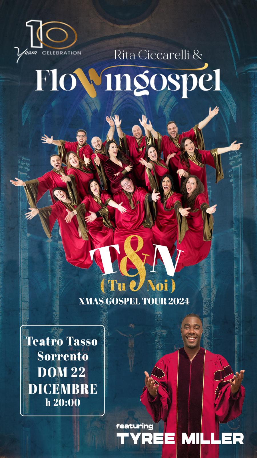 I FlowinGospel, diretti da Rita Ciccarelli, celebrano il loro decimo anniversario con uno spettacolo, inserito nel "T&N Xmas Tour", che vedrà la presenza di Tyree Miller, vocalist e producer statunitense di fama internazionale, al nono posto nella classifica Billboard Gospel.