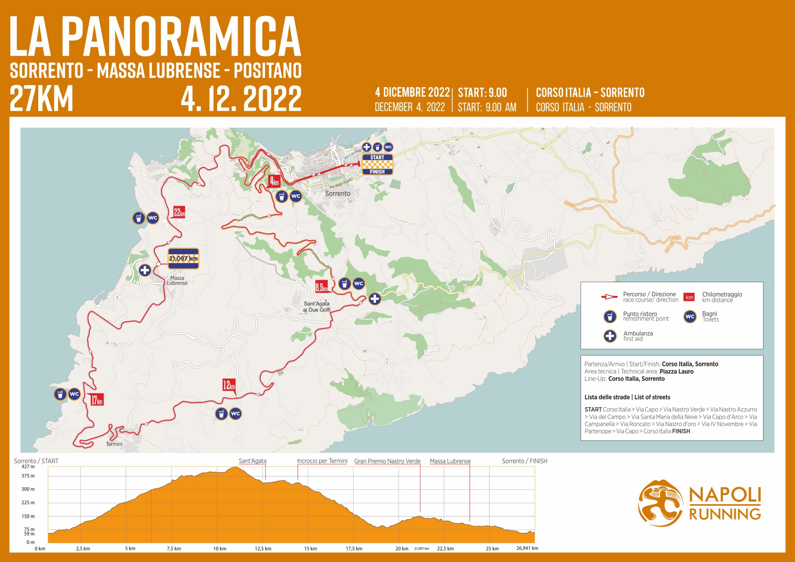 L’istituzione della sospensione temporanea della circolazione veicolare riguarda quindi, a partire dalle ore 8.30 di domenica 4 dicembre, e fino al termine della gara, corso Italia, nel tratto compreso tra piazza Tasso e piazza Lauro, piazza Tasso, corso Italia nel tratto compreso piazza Tasso e largo Parsano Vecchio, via Capo, sino al confine territoriale con il Comune di Massa Lubrense e, al ritorno dei podisti verso piazza Lauro, lungo il percorso inverso.