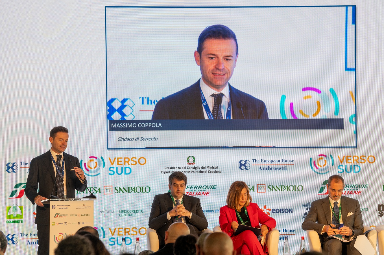 Il sindaco di Sorrento, Massimo Coppola, è intervenuto questa mattina in apertura della seconda edizione del Forum Verso Sud, in svolgimento presso il Grand Hotel Excelsior Vittoria, con la presenza dei ministri, esponenti e rappresentanti dei Paesi del Mediterraneo, vertici di imprese, business leader e opinion maker.